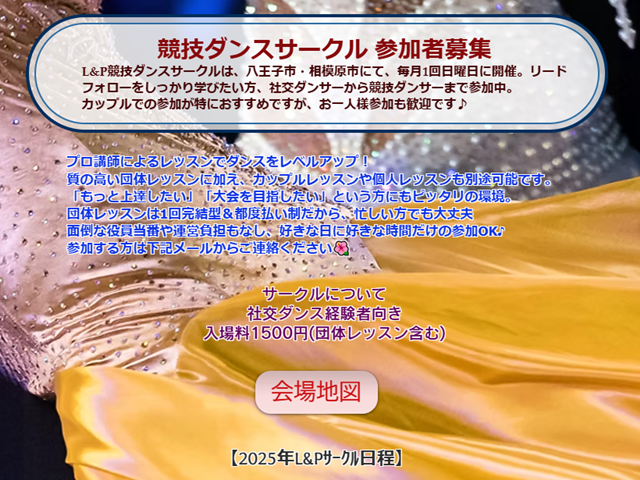 9月28日(日)、L&P競技ダンスサークルのレッスンに行きます!