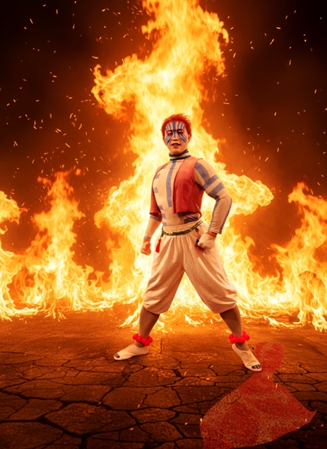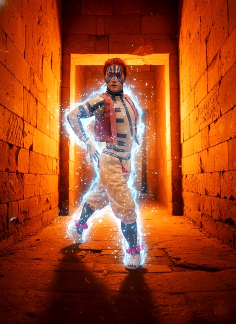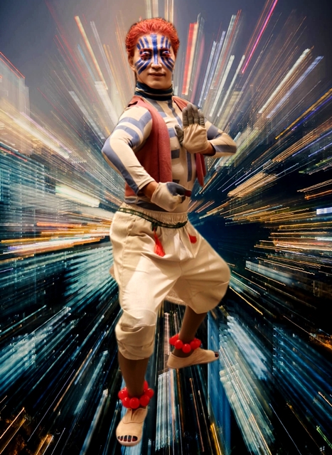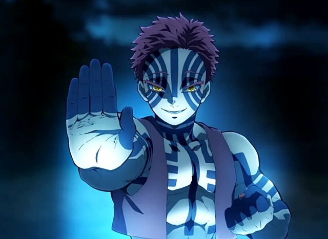 『鬼滅の刃』十二鬼月・上弦の参「猗窩座」(アカザ)コスプレ写真です。