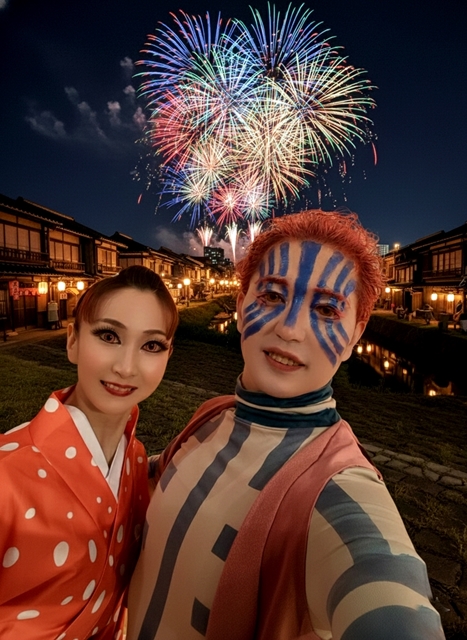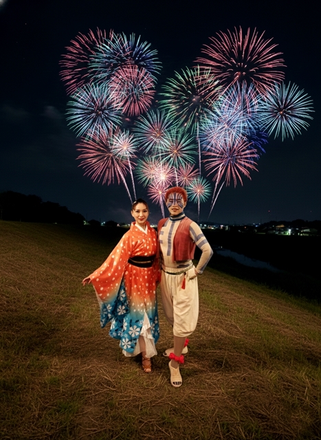 花火をバックに♪