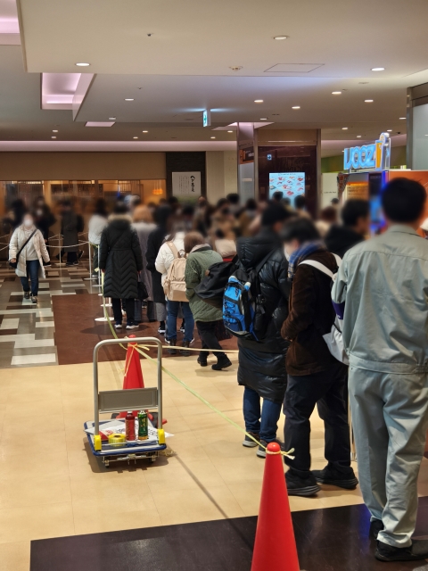 「最後尾はこちら」の案内をもっている係がいました。