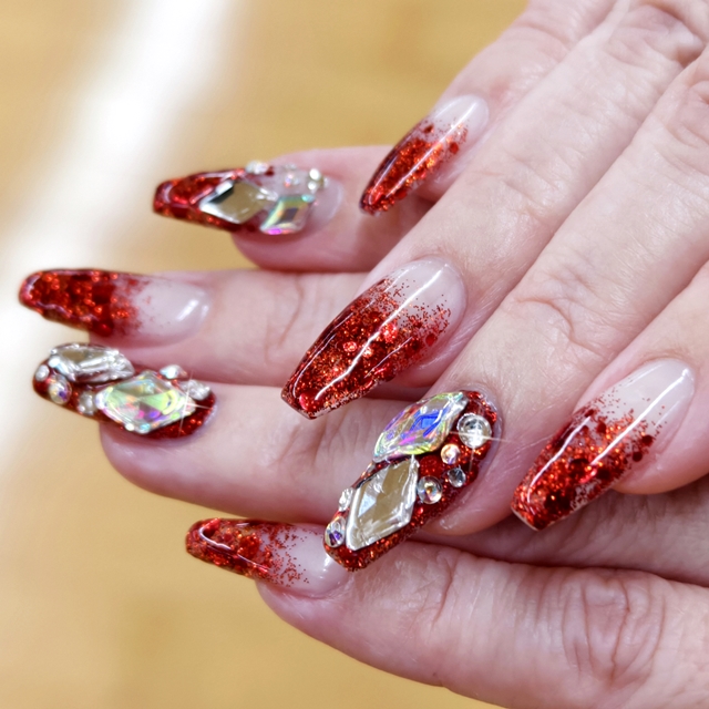 2026年1月14日 0件 ネイル紹介。。。 【2026新春無料キャンペーン!】のお知らせ!(←クリック!)◆2026年 1月17日(土)~ 1月31日(土)まで◆各種無料レッスンあり!◆特典多数!・・・・・・・・・・・・・・・・ 石川です。 純代センセのネイル紹介です。 去年の秋くらいのですが、まだアップしてなかったので。 赤のラメラメ。 石敷き詰めでギラギラ。 大きなラメが迫力ありますね。 この長さだけど、ほぼ自爪です。 まだ紹介していな […] 続きを読む