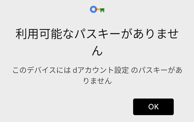 パスキーがないとでますが、パスキーの設定はしてあります。