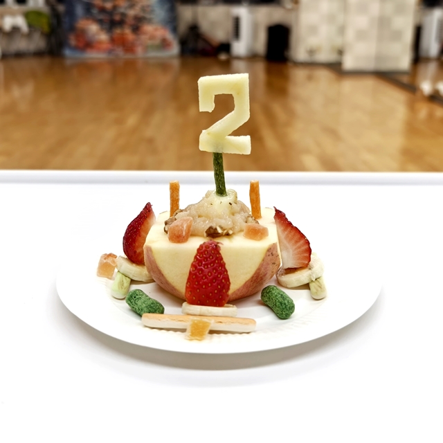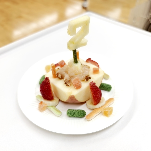 材料は、リンゴ、イチゴ、バナナ、ドライフルーツ、クルミ、パパイヤピューレ、うさぎ用ビスケットなど。