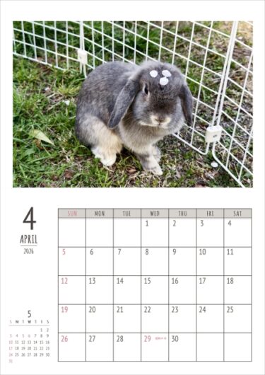 アップし忘れていた、4月の自作うさカレンダーです。
